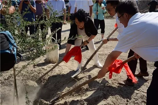 祥宇公司李董事長與報(bào)道團(tuán)的記者在示范園里親手合栽了一棵油橄欖樹,在此次的武都行種下了一顆友誼樹,結(jié)下了一份橄欖情。