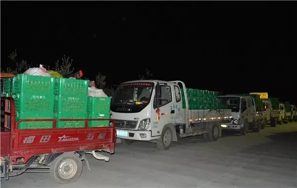 門口停放的運(yùn)輸車擺成了和白天一樣的隊(duì)形