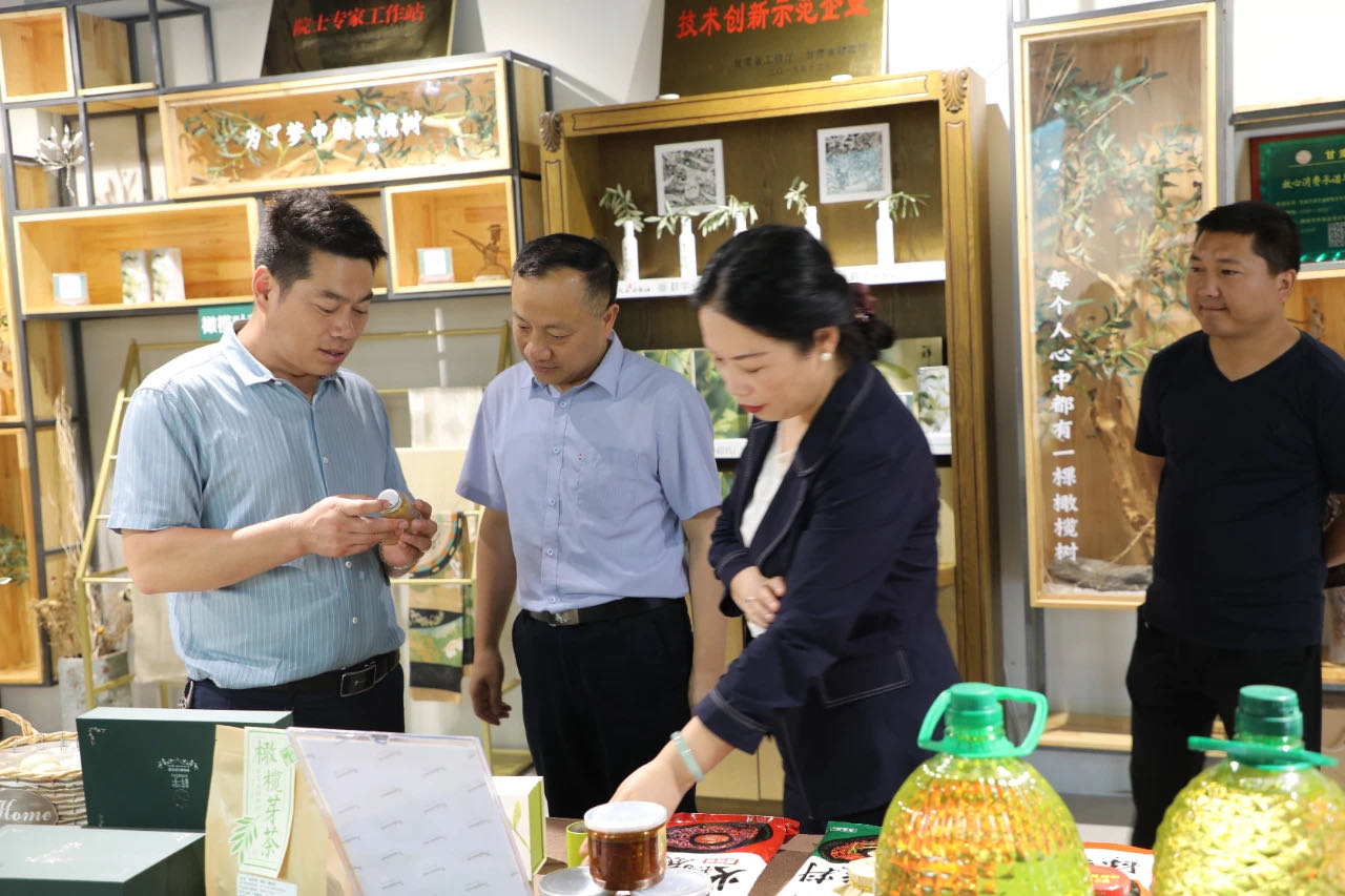 在產(chǎn)品體驗(yàn)區(qū)王總向王處長(zhǎng)一行介紹了祥宇特級(jí)初榨橄欖油、橄欖茶、橄欖菜、橄欖保健品等系列產(chǎn)品,