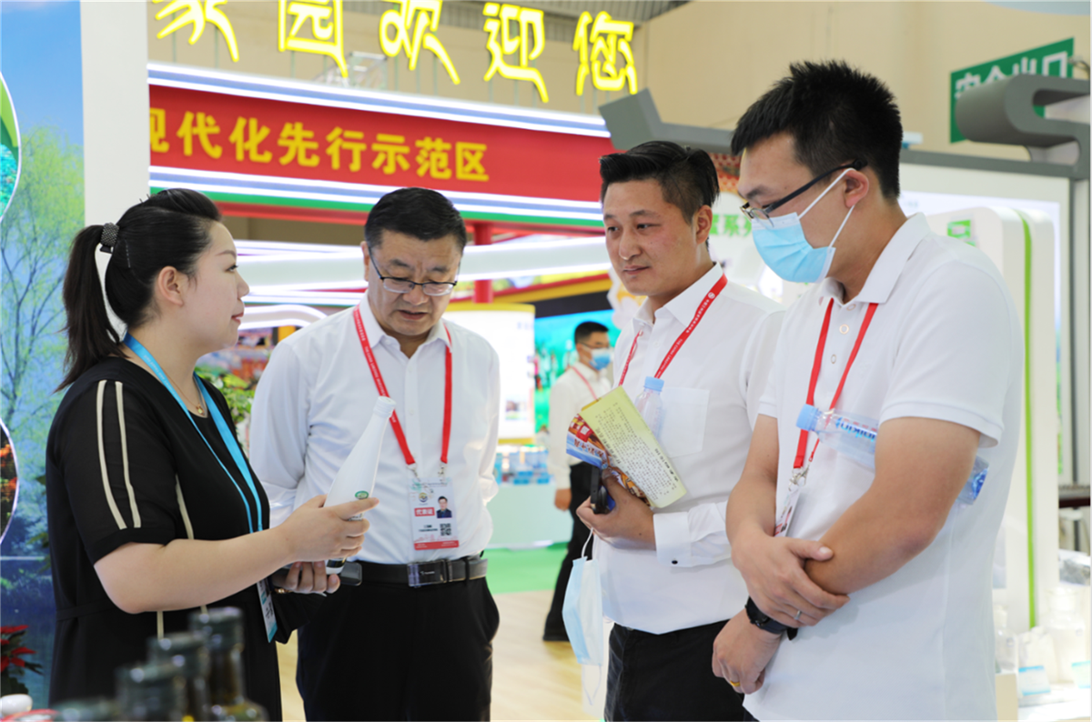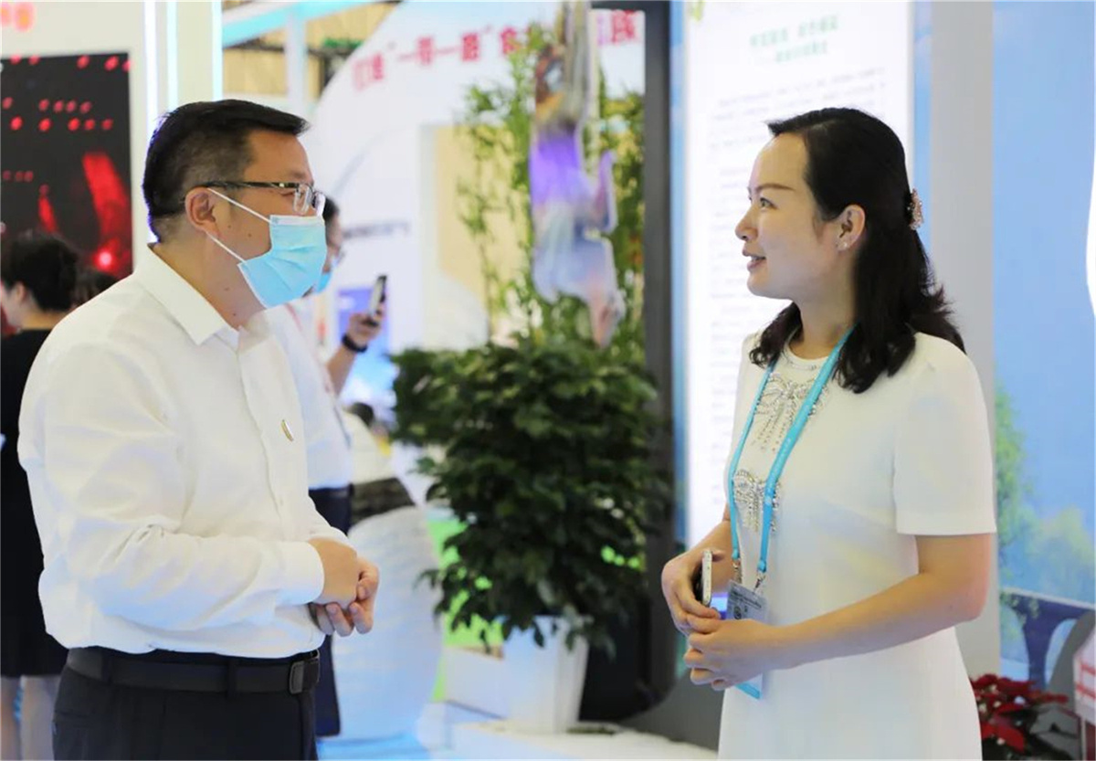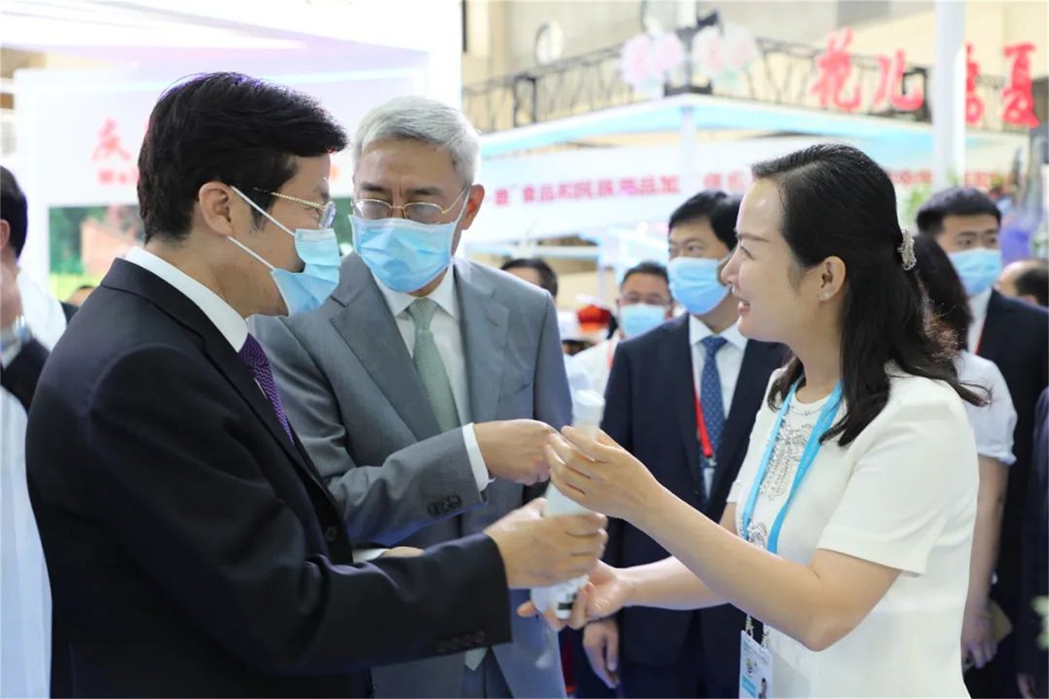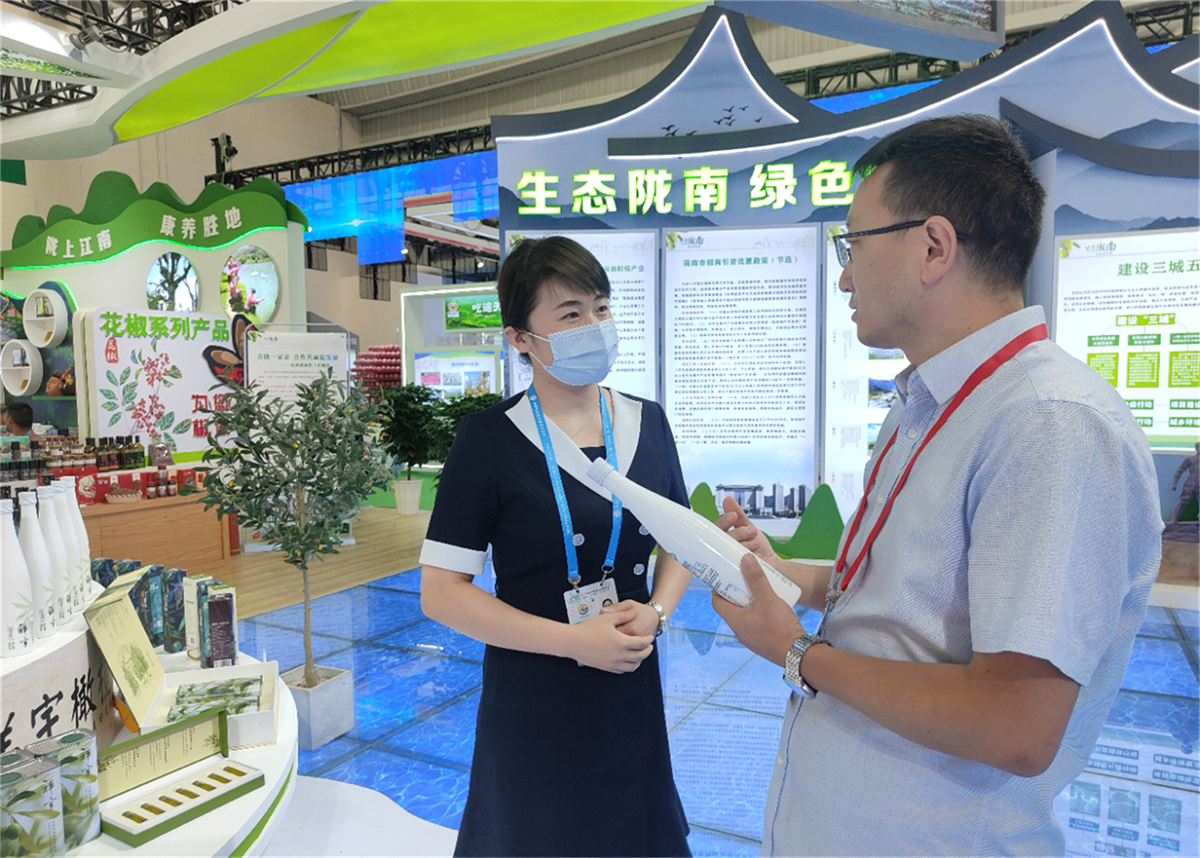 省市領導走進隴南館,祥宇公司董事長劉玉紅邀請各位領導品鑒了祥宇系列產(chǎn)品,