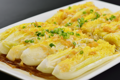 材料:娃娃菜、粉絲、蒜末、蔥末
