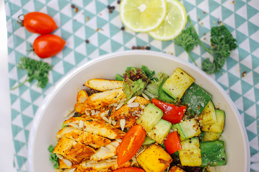 材料:雞胸肉、西葫蘆、西蘭花、玉米、小番茄