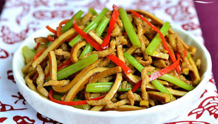 做法:1、香干切細(xì)條;芹菜切段焯水