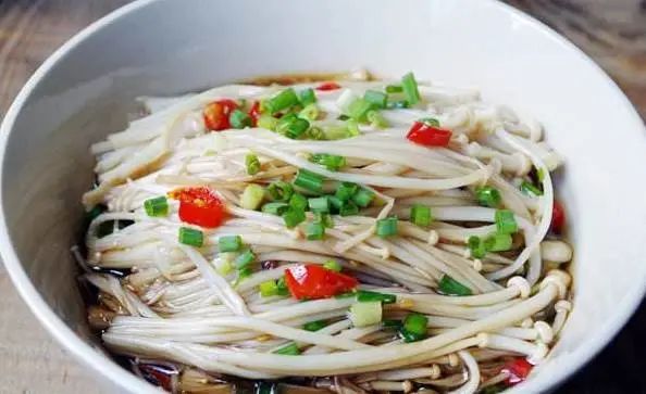 材料:金針菇、生抽、朝天椒、小蔥、橄欖油
