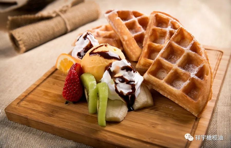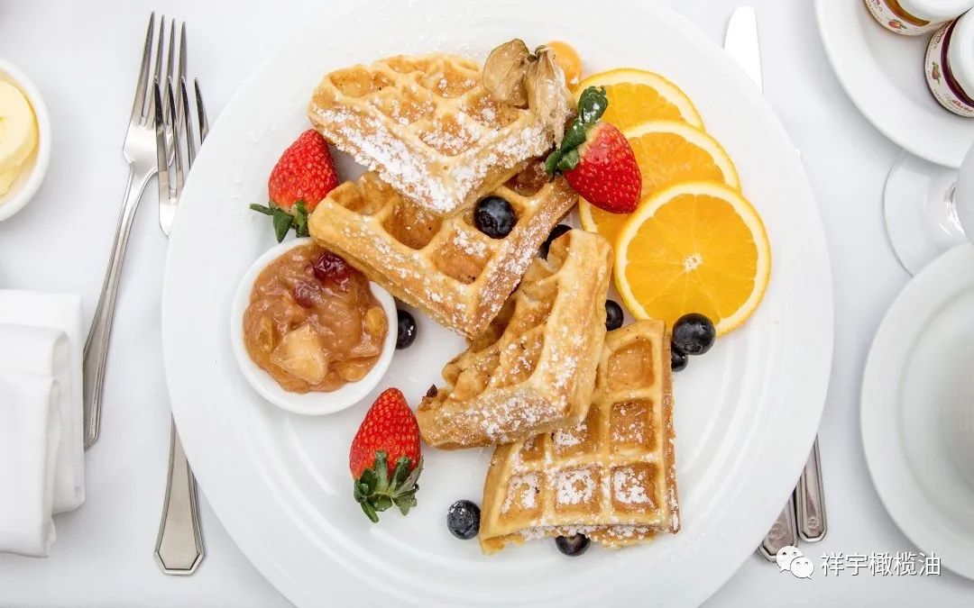 3 給華夫餅機(jī)烤盤刷上一層薄薄的祥宇特級初榨橄欖油,