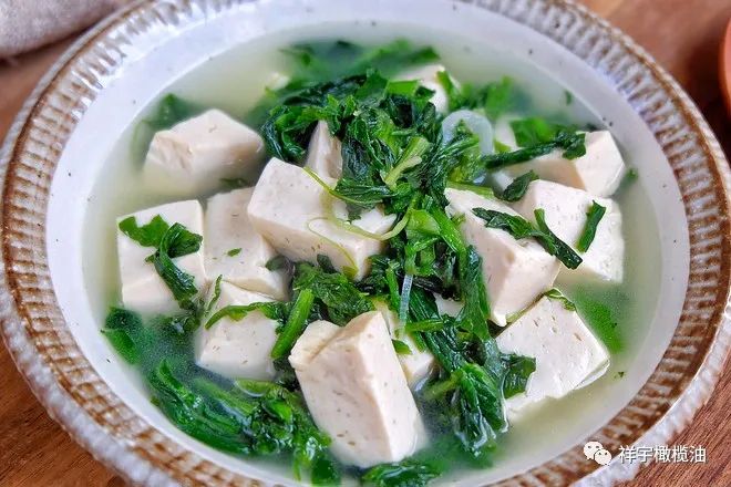 食材:薺菜、豆腐、橄欖油、蔥姜末