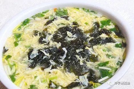 水沸騰后,放入地皮菜,淋入雞蛋液