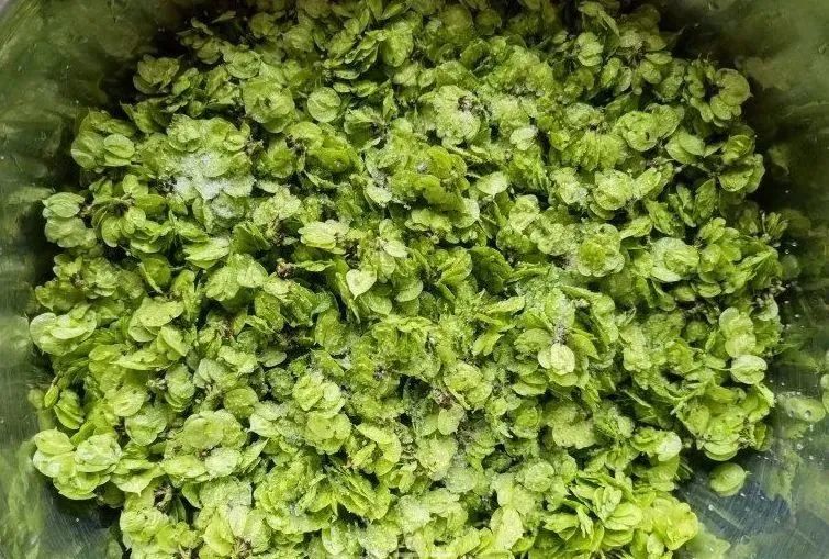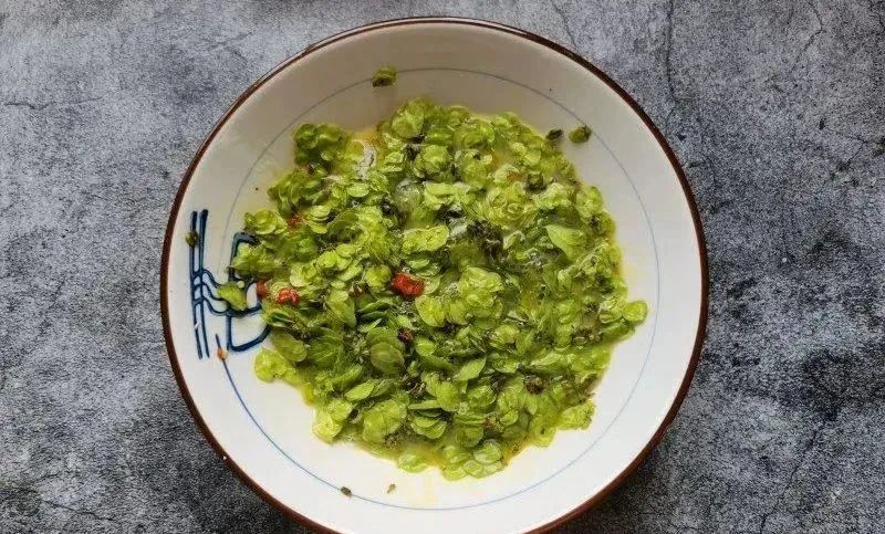 榆錢洗凈控水,放鹽、小米椒攪勻。