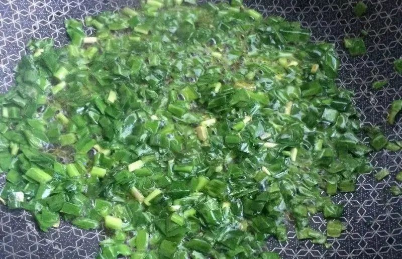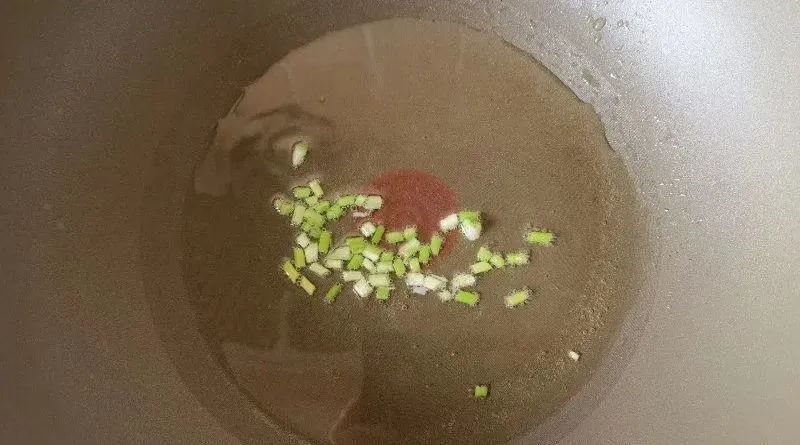 鍋里適量橄欖油燒熱,蔥花炒香。