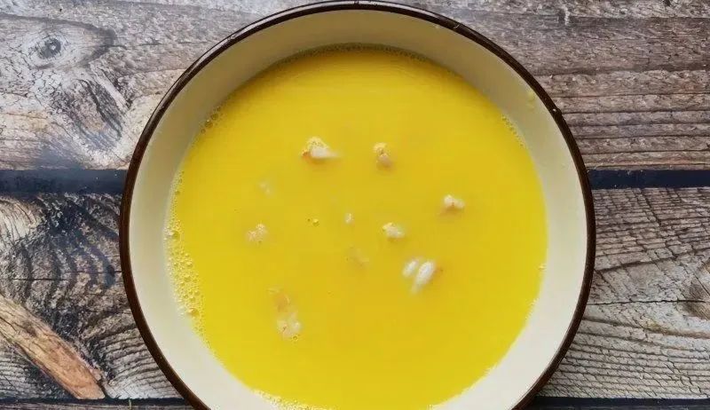 倒入不粘鍋里待鍋邊雞蛋液鼓起。
