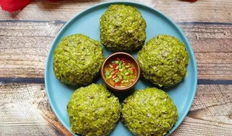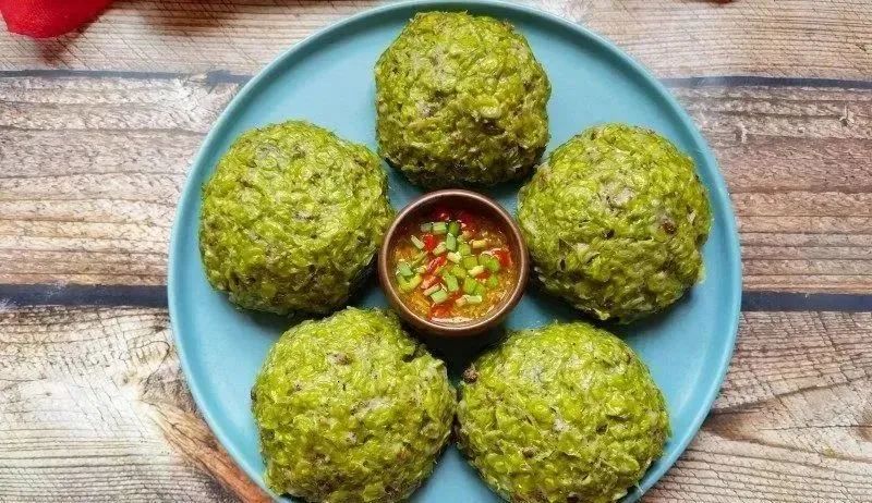 榆錢窩窩頭蒸熟取出,蘸汁即食。