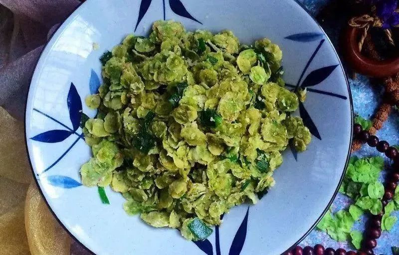 原料:榆錢、面粉、鹽、蒜、生抽、橄欖油。