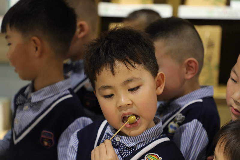 在產(chǎn)品品鑒區(qū),他們品嘗了各種橄欖美食,吃的津津有味。