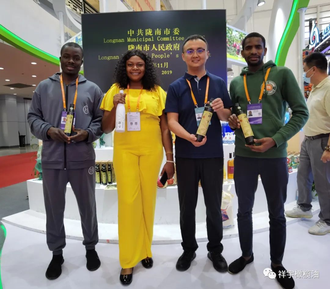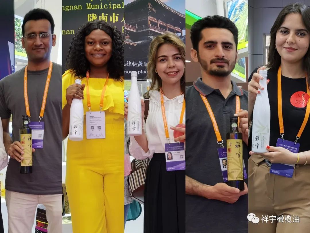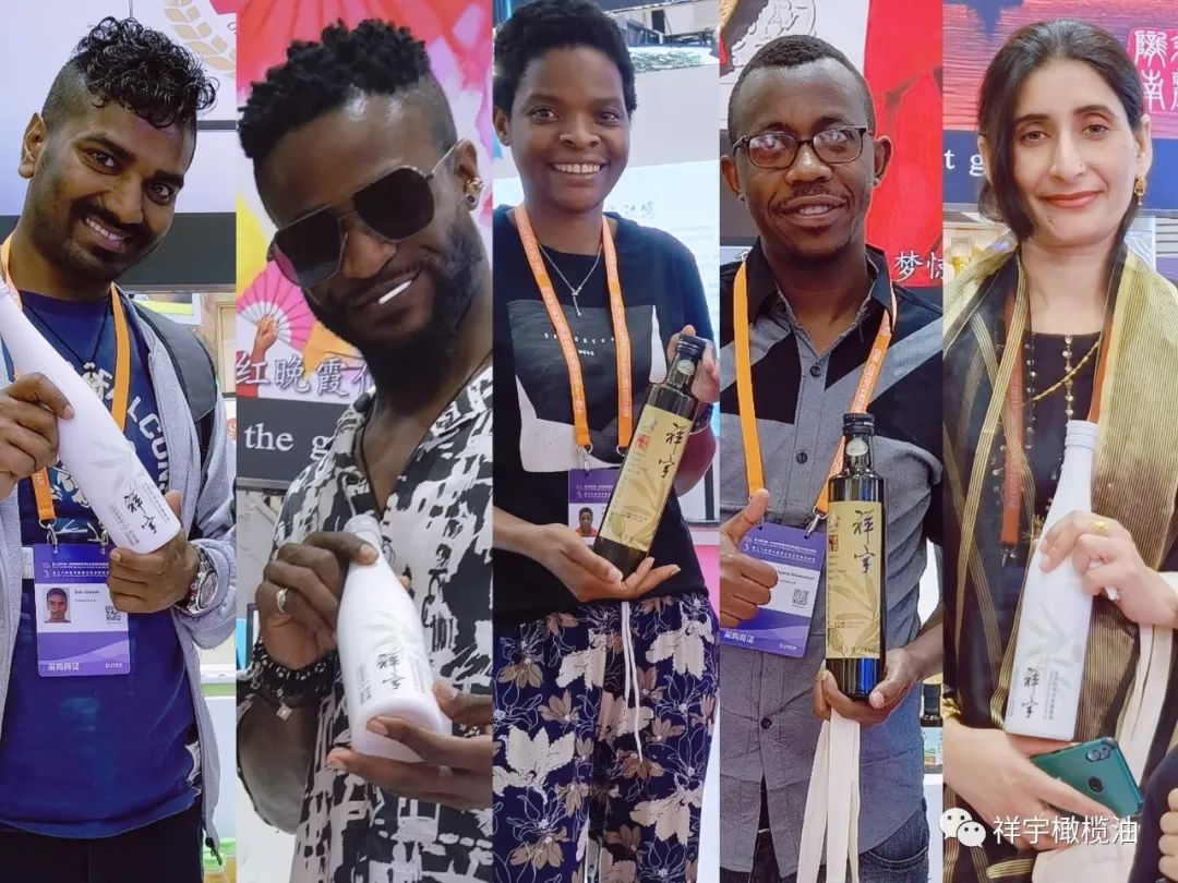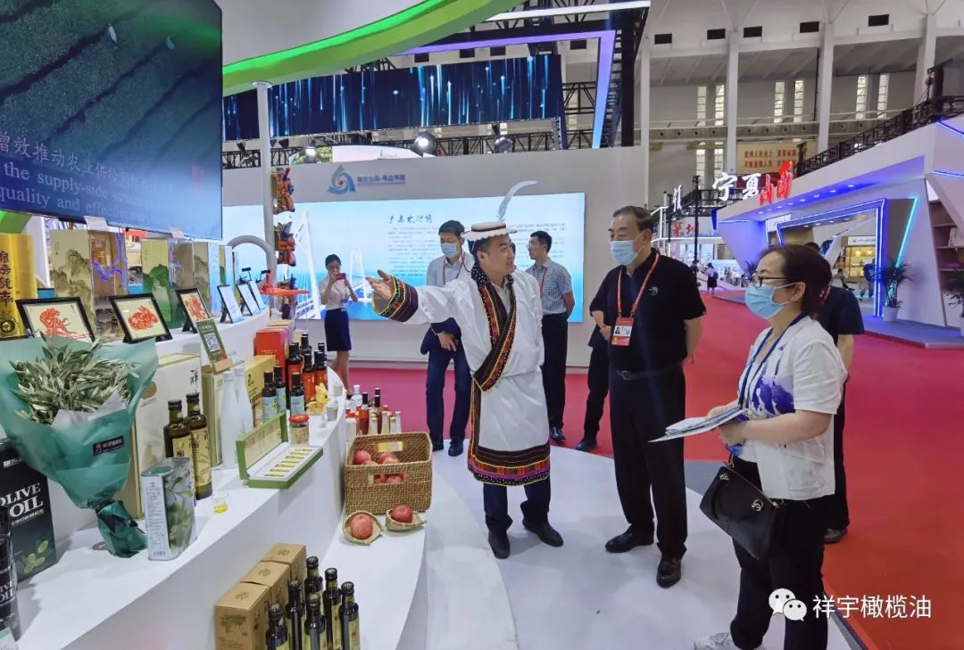 展會(huì)現(xiàn)場,來賓、客商紛紛到祥宇橄欖油展臺(tái)前駐足品鑒,