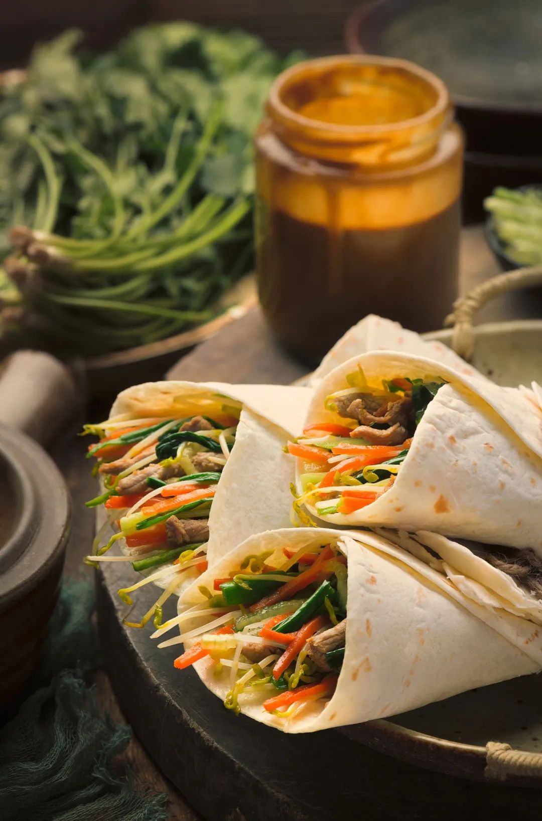 炒熟包入春卷皮內(nèi),配上甜辣醬即可