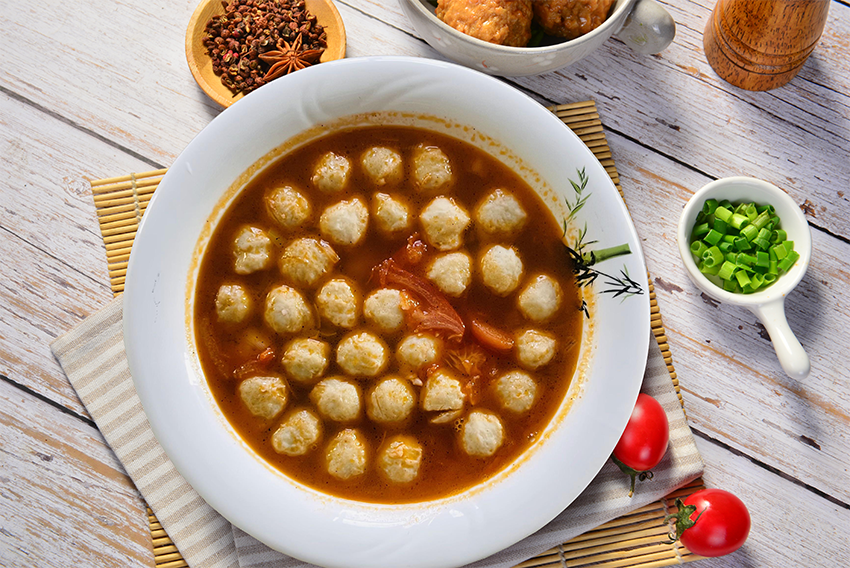 濃濃的番茄湯汁出來(lái)放入雞肉丸