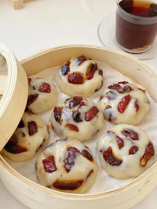 糯米、紅棗和葡萄干按順序鋪好壓實(shí)